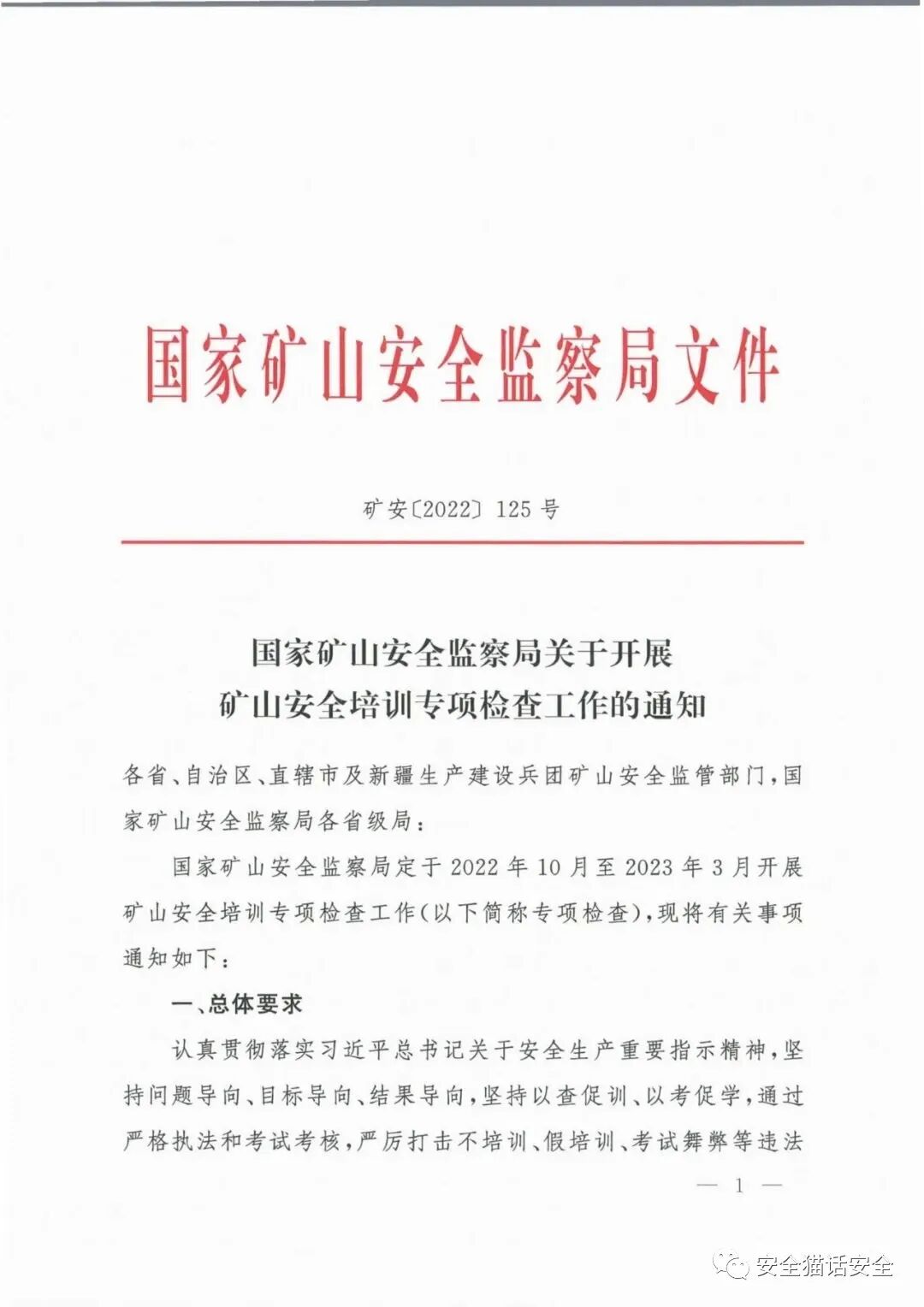 矿安〔2022〕125号 国家矿山安全监察局关于开展矿山安全培训专项检查工作的通知