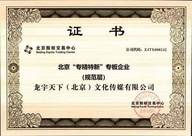 日前,北京股权交易中心“专精特新”专板正式开板,中安传媒平台的运营单位龙宇天下(北京)文化传媒有限公司(下称“龙宇天下”)正式登录北京“专精特板”专板,代码为ZJTX000242。这是对龙宇天下在应急安全宣教培训领域创新能力、持续竞争力和高速成长性的高度肯定。